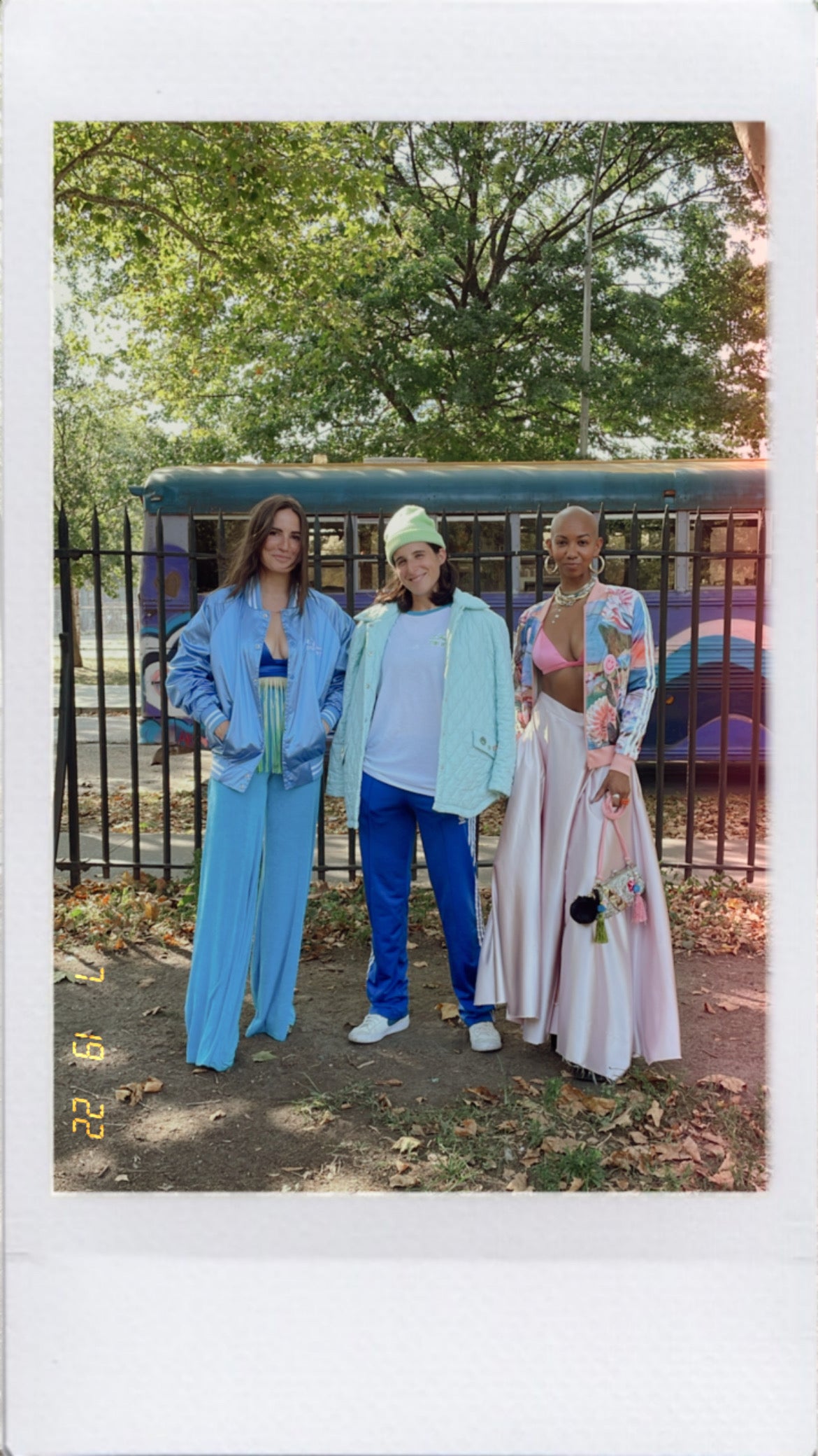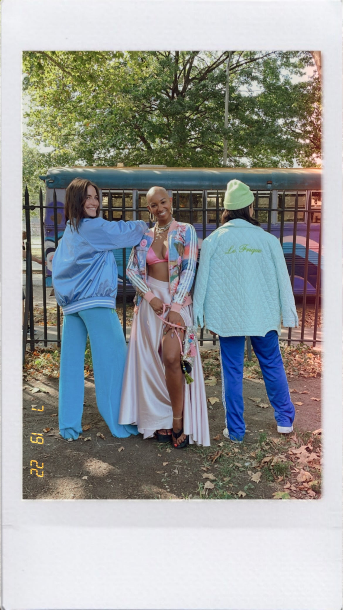 I love this jacket! Quilted blue with lime green Le Frique embroidery, different pins representing my life in Los Angeles including surfing, makeup, movies, and skateboarding. Originally a piece from an Anne Taylor sample sale, this baby is one of a kind and so cool. Women's size M/L for fitted or XS/S for a looser fit.